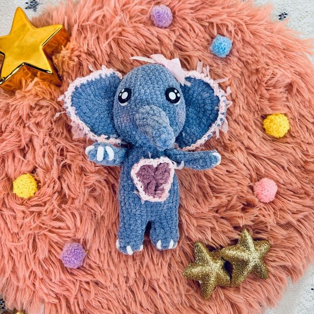 Handmade crochet Amigurumi - Blue elephant with a heart on the belly - A nice gift for friend or loved one