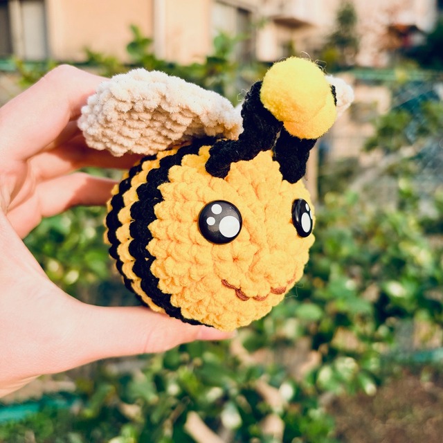 This fluffy crochet bee amigurumi will brighten your day! Lovingly handmade with soft, plush yarn, this little bee has a round shape and a sweet smile that brings a touch of happiness wherever it goes. Perfect as a desk companion, nursery decoration, or a cheerful accent for your room. It’s also a great gift idea for bee lovers, kids, or anyone who enjoys cute handmade crafts. 【Size】6cmx6cm x8㎝ 【Materials】Polyester ※Colors may appear different depending on your screen. ※Handmade item. ※I have a cat so please consider carefully if you have allergies. ※Each piece is carefully crafted by hand. However, please handle with care as pulling or subjecting it to strong impact may cause damage.