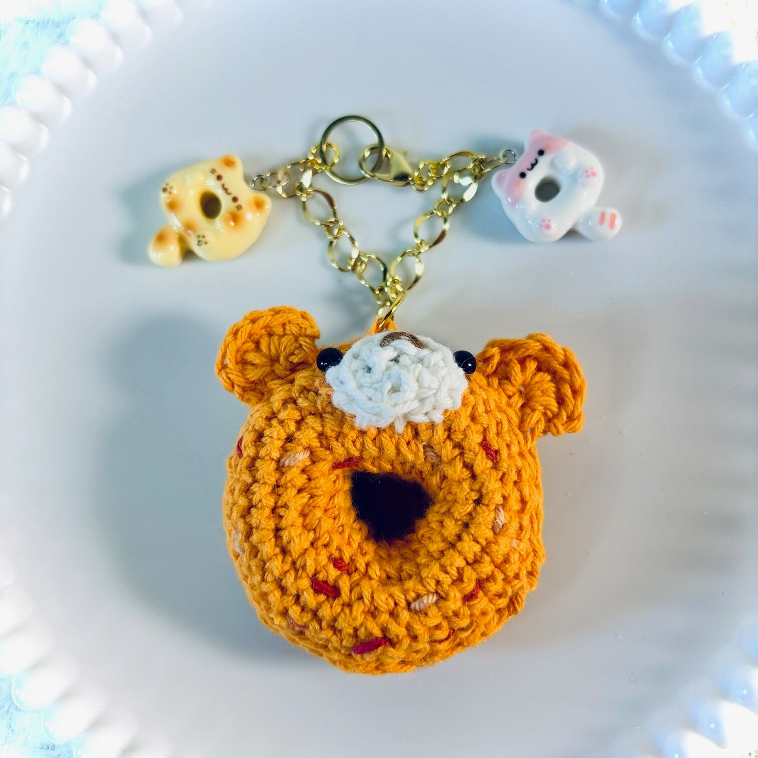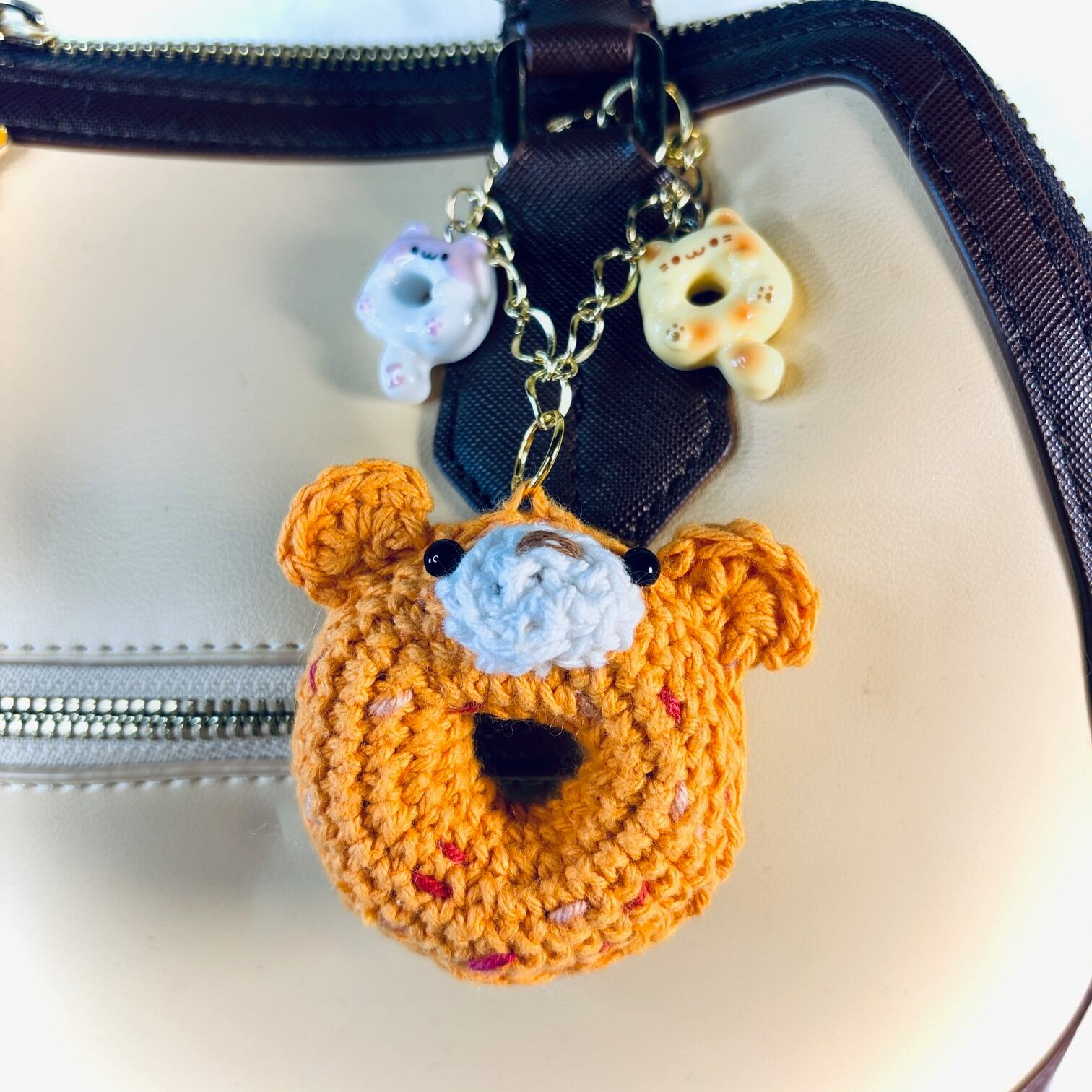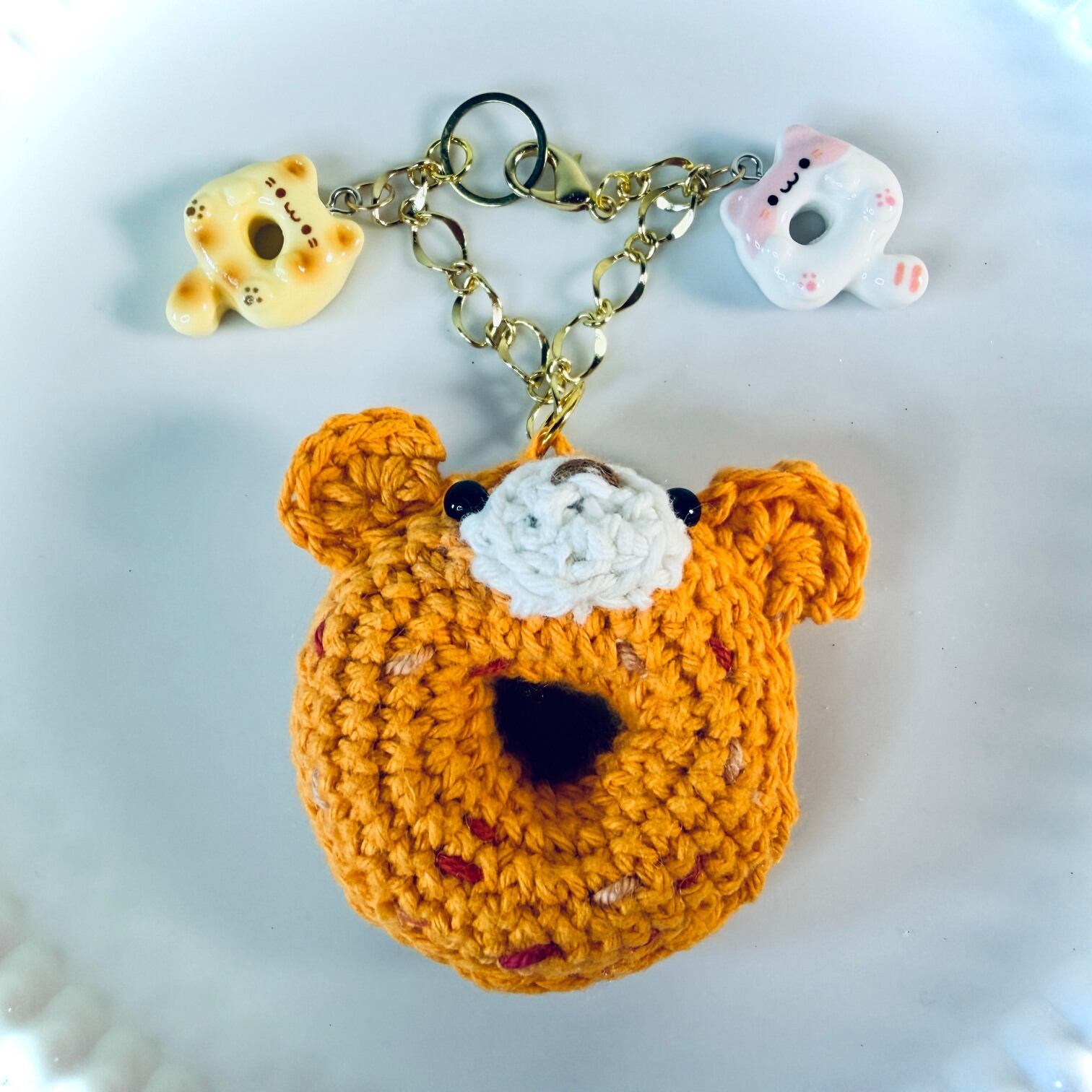 Handmade Bear Donut Bag Charm | Crochet Amigurumi Keychain | Cute Cat Donut Charms | Kawaii Handmade Accessory