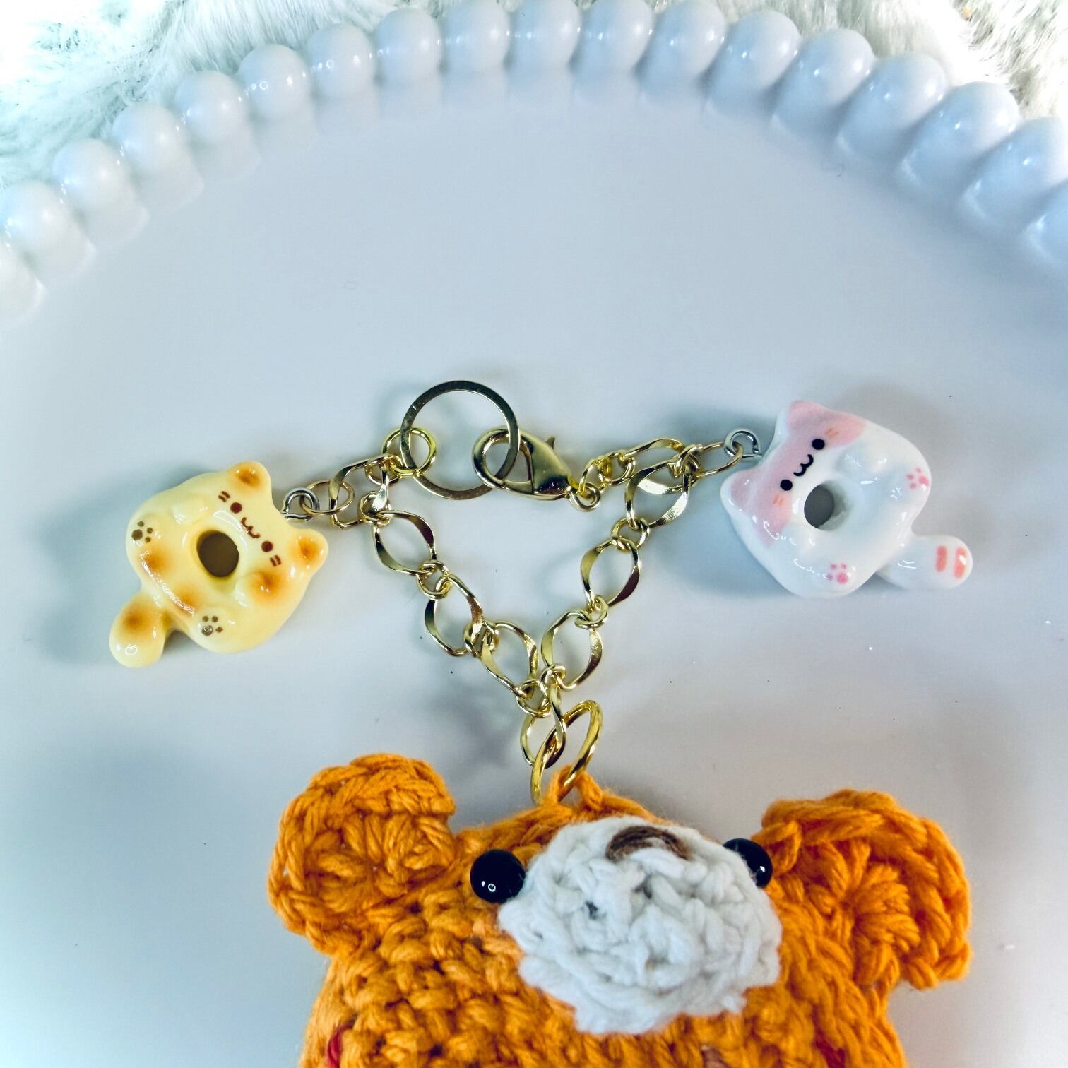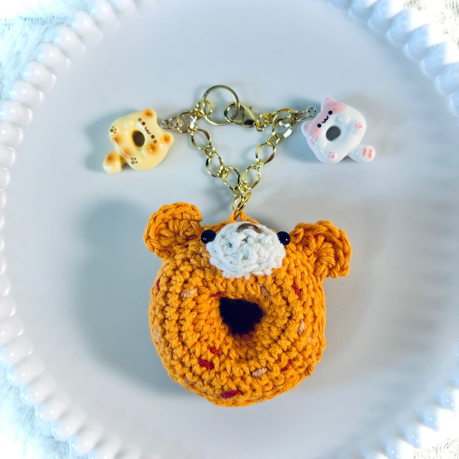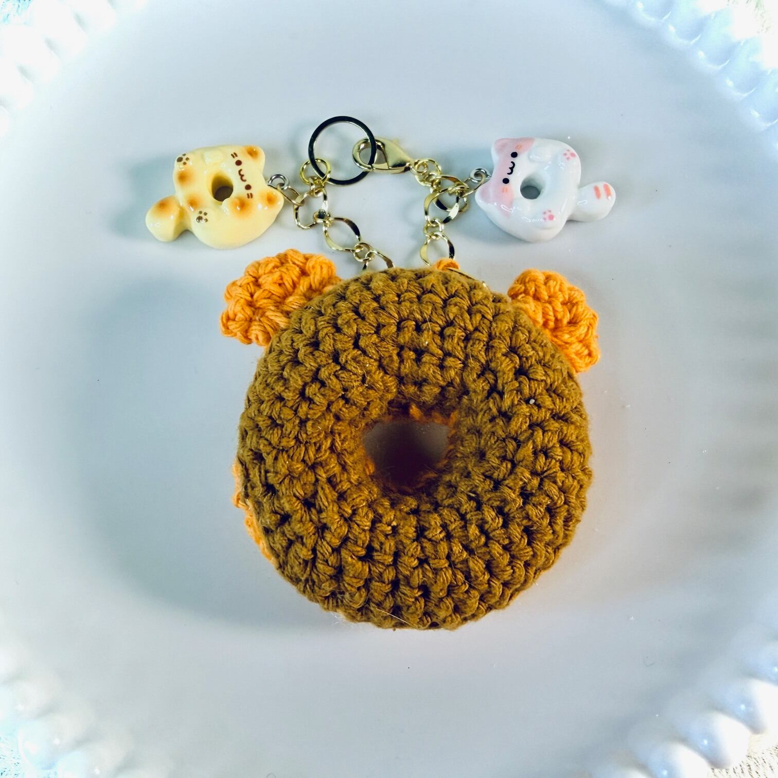Handmade Bear Donut Bag Charm | Crochet Amigurumi Keychain | Cute Cat Donut Charms | Kawaii Handmade Accessory