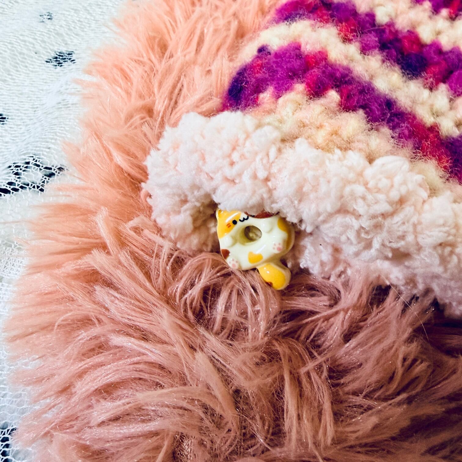 Charming cat donut charms are attached on the side, adding a playful and unique accent.
