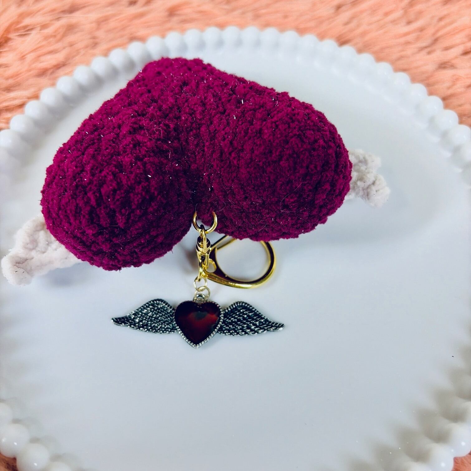 Winged Heart Amigurumi Keychain | Handmade Heart Charm | Bag & Key Accessory